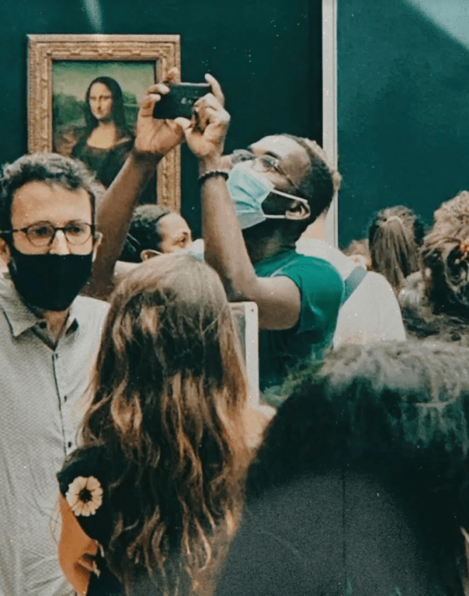 She had hoped, foolishly, that with all of the travel restrictions upon her own kind–Americans–that the Louvre would be relatively empty. And, for all intents and purposes, it was–save for in that room where no matter what the conditions outside in the real world were, it could never stave off the hordes from coming to see her. People were more than willing, it appeared, to contract corona in exchange for a glimpse of that petite painting radiating the most notorious simper known to humankind.