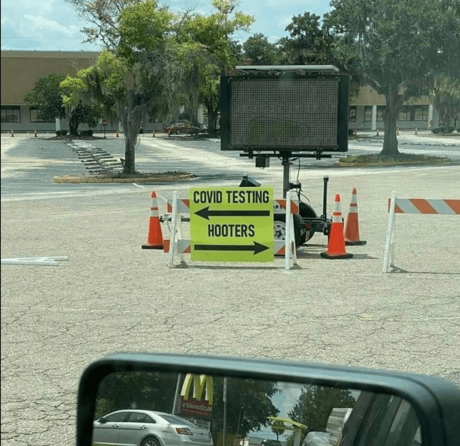 Sure, Bud knew he had a responsibility to “the team” to get to the drive-thru testing area as soon as possible, but when he saw there was another sign for the Hooters on 4th Street, how was he to be expected not to want to go there first? What’s more, he hadn’t eaten lunch yet, and their signature wings sounded oh so delicious. Especially if they were going to be served by a tight top-wearing, big-titted Hooters girl. The more Bud thought about it, the more he figured that they wouldn’t have put the sign up about the Hooters if they didn’t want people to think about going there before getting a Covid test. And yeah, sure, somewhere deep down he knew it was morally reprehensible “or whatever” to ignore his social responsibility to ensure that he wasn’t diseased. But for fuck’s sake, how was he supposed to ignore the huge boner he was getting that could only be quelled by the sight of a Hooters girl that he would also pay to blow him in the bathroom (or maybe his car) while he waited for his wings?