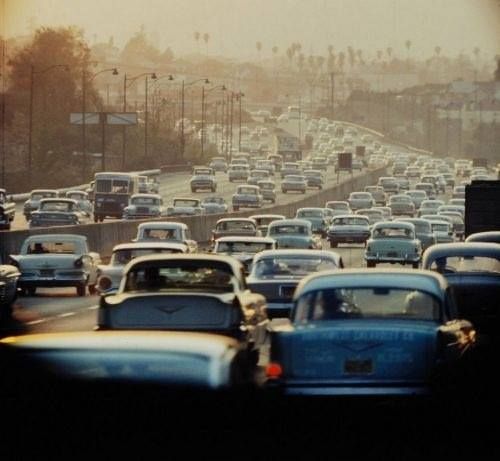 California might not have been the only state to benefit from such federal funding, but it was the true champion of making “being one” with the car a “normal” part of existence. Case in point, Robert O. Peterson. A.k.a. the founder of Jack in the Box. The first location being in San Diego, Peterson decided to designate himself as the pioneer in wielding the then-innovative two-way intercom system that would allow drive-through sales to be emphasized (eventually becoming the fast food standard practice). In fact, Peterson was sure to limit indoor seating, eliminate carhops and stick to a highly specific menu—all of which served to vastly cut down on overhead and maximize profits. Additionally, originating in Southern California and all, Jack in the Box would transcend into the only mainstream fast-food chain to parade tacos as a primary menu item (no wonder, then, that the corporation would end up “acquiring” Del Taco). Indeed, Maritza was on her way to get some now… well, that would be one of the things she got. For there is no amount of food that can fill the black hole of post-modern dissatisfaction. Plus, her lunch break was all she had to look forward to in a day of office drudgery. Might as well “live it up” by stuffing her face. And though she told herself she would cease to use her wheels so frivolously and whimsically by not taking unnecessary trips (and therefore, also getting in some kind of exercise), she found herself, once again, crunched for time. The car was still quickest. Even despite the occasional traffic congestion during the journey. So how was she to be blamed? Everything conspired to render the “auto” as the sole means of “getting around”—while ultimately getting nowhere. Fast, and in the name of “commerce.”