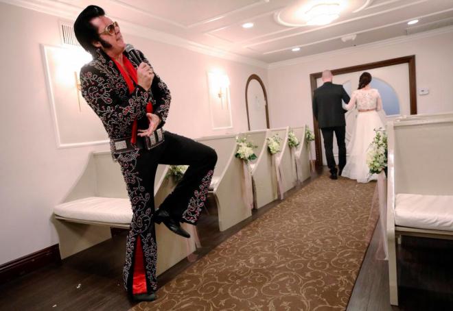 Looking back, it seemed crazy to her that she was even able to stumble upon the Elvis Wedding Chapel, a roughly twenty-minute walk from the Circus Circus. It was almost as though Fate had deliberately intervened to make her see the light regarding her nuptial future. She had to get married with Elvis officiating, ideally while he was interjecting verses of “Fools Rush In.” There was simply no other way now that she had borne witness to this scene. What’s more, the busty blonde woman marrying the tall, muscular black-haired (complete with his own Elvis pompadour) man was something to covet as well. And, later on in life, it came as no surprise to her that she ended up spending all her extra cash on bleaching her hair every month (in addition to the one-time fee for that breast augmentation).