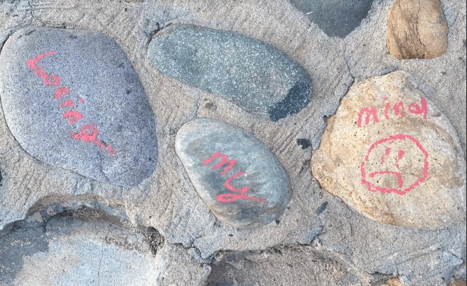 Gisele drew closer to the seating ledge made out of rocks. Before she could even tell what she was doing, she found herself checking on whether or not the graffito she had scrawled in those small hours of the morning so long ago was still intact. Catching sight of the pink markings, she looked closer to see that “Losing my mind” appeared as freshly written as the night she had thought it into reality. And that’s when it happened. Renee’s head popped up from behind the wall of rocks, her spectral and transparent presence—also looking just the same as it did that night—had materialized to tell Gisele, “Well it’s about fucking time you showed up. Did you brink the vodka?” As a matter of fact, she had. Gisele pulled out a flask from the interior pocket of her suit jacket and rotely passed it to Renee, who drank as though this was something they did all the time. Which, of course, it used to be. Maybe this was, at last, Gisele’s punishment. Condemned to spend the rest of her days as she did in high school, because Renee still had to. Stuck in this purgatory called adolescence with the type of girl who never stopped talking about nothing.