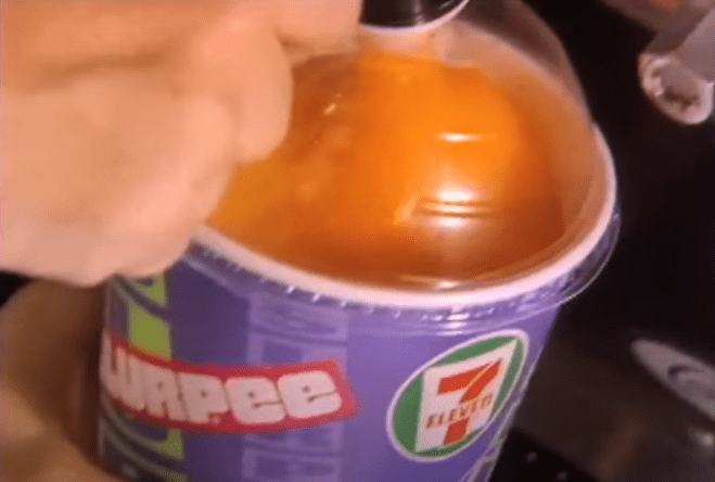 Throughout this blip in Gen X supremacy, there were other, more straightforward varietals of making light of the “dangerous” after-effect of drinking the concoction. For example, a commercial that shows a pudgy kid sitting on a lawn chair in a decidedly typical barren (read: trashy) landscape posing as an American backyard. He screams (in a manner somewhat reminiscent of Michael Jackson in “Black or White” or “Scream”) after taking a sip. Once it passes, he chuckles and notes to the audience, “Brain freeze.” A voiceover then adds, “So good, it hurts.” This portion of the tag line speaking to a moment in history when it was still okay to trumpet the benefits and payoffs of pain, as opposed to avoiding all talk of that in current marketing due to the Gen Z aversion to experiencing anything but pleasure and instant gratification. The voiceover concluded (to images of someone pulling the spigot’s handle to let out an orange-hued nightmare), “Slurpee: the coolest thing on Earth.”
