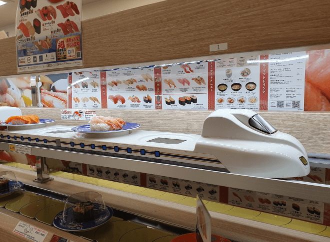 But again, as most things actually put into practice, the idea phase underestimates the extent of human assholery. A “phenomenon” that has evolved and expanded over the centuries, particularly with technological advances to assist in “the spread.” In Shiraishi’s era, assholery was limited to more large-scale varieties, like, say, developing the atomic bomb. A real fear of it manifesting throughout the world during the five years Shiraishi spent perfecting his idea, finally able to open a new restaurant with the conveyor belt in motion in 1958. Called Mawaru Genroku Sushi, it existed in both a “civilized” time and place (Higashiōsaka-shi). Maybe that’s why Shiraishi never had to deal with the problems of modern restaurant proprietors. The ones who took his idea and further bastardized it (as is the way with ideas that are increasingly and more bombastically monetized—see also: the Pam and Tommy sex tape getting distributed on the internet).
