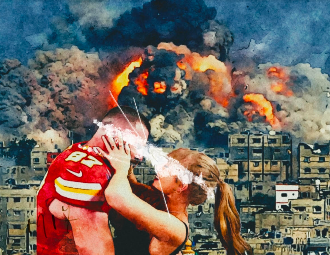 In truth, it is during times like these—times of unmistakable human cruelty—that people seek to retreat even further into a coma-like bubble that pads them from reality. Football, in America, is that bubble. And never was it more secure than on that Super Bowl Sunday as a certain nation abroad saw an opportunity to invade Rafah, in the southern Gaza Strip. The place where Palestinians were told they would be “safe.” But, of course, one should always consider the source that is telling them such things. Unfortunately, Palestinians haven’t had the luxury of much time to consider anything at all, simply fleeing to any other scant part of the country that isn’t currently experiencing an endless rain of bullets and bombs. Clearly, there is nowhere else for anyone to go. Trapped like rats in cages waiting to either run themselves ragged, risk death by being caught in the crossfire or “simply” starve. That latter phenomenon being in stark contrast to how Americans gorged themselves while staring with slack-jawed awe at the football players on their screens who looked just as beefy as the burgers they were biting into with such careless abandon and oblivion. After all, as Childish Gambino once said, “This is America.” “Greatest country in the world” (he didn’t say that second part, but anyway…)—the country where no amount of excess can be frowned upon.