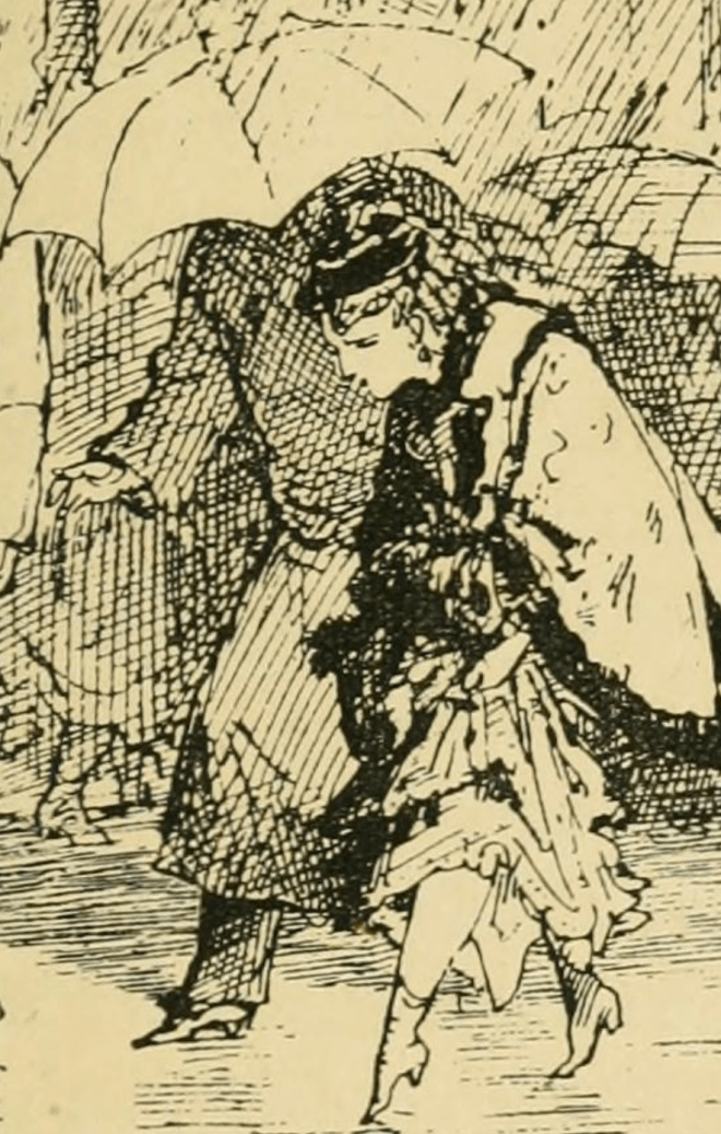 When the moment arrived, it was not exactly what he had expected. While Loïc had hoped and anticipated a revolving door of moule, the very first day he went out in search of une femme américaine, it happened to be pouring down rain in gushing, waterfall-like sheets. One of the most intense and ceaseless downpours of the summer, as a matter of fact. Thus, when he took to the streets with his giant umbrella (big enough for two, bien sûr), he quickly encountered one of the most attractive women he had ever seen. Stranded underneath an awning in pink stiletto sandals, a short black skirt and a white crop top with the word “Puttana” written across it in black cursive script. Of course she wasn’t American.
