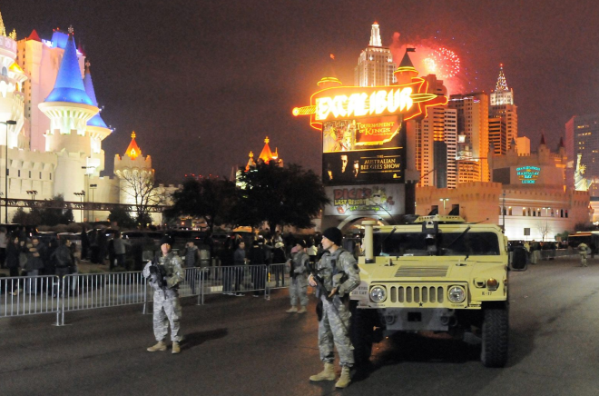 Even so, the horror of this shooting had deeply affected her in ways she still couldn’t predict. Like when, the same year as the shooting, she had an all out panic attack upon seeing a slew of uniformed soldiers, with their guns and LUVs, patrolling the streets under the auspices of “Operation Night Watch.” An “endeavor” that took place every New Year’s Eve for the annual celebration. Though it’s hard to associate a celebration with the National Guard stomping through the streets in order to, along with regular police, “doubly” ensure that things couldn’t “get out of hand.” But they already had. Paddock’s mass shooting was a terrifying, apex example of that.